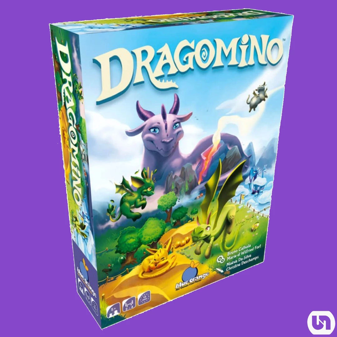 Dragomino is the children’s version of Kingdomino designed by Bruno Cathala and Marie et Wilfried Fort and illustrated by Maëva Da Silva and Christine Deschamps. Players build their ”kingdom” and as they match different landscapes they try to collect as many eggs as possible!