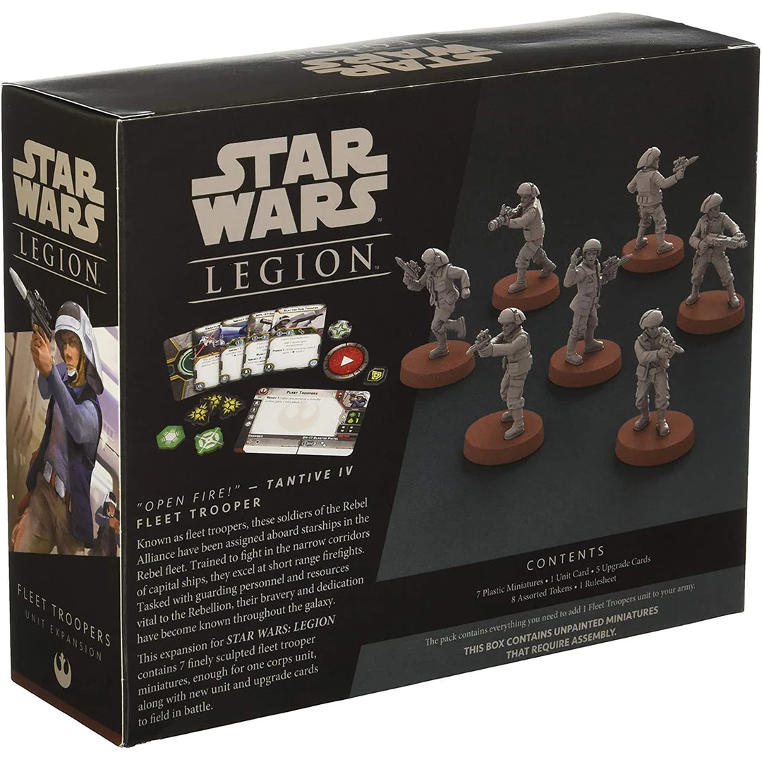 - Defend the Rebellion aboard a starship or on the ground with the seven unique, highly detailed miniatures featured in this expansion pack. Five of the Fleet Troopers rush forward, relying on their DH-17 blaster pistols, while two heavy weapons specialists elect to bring some tougher armaments—an MPL-57 or a deadly scatter gun.