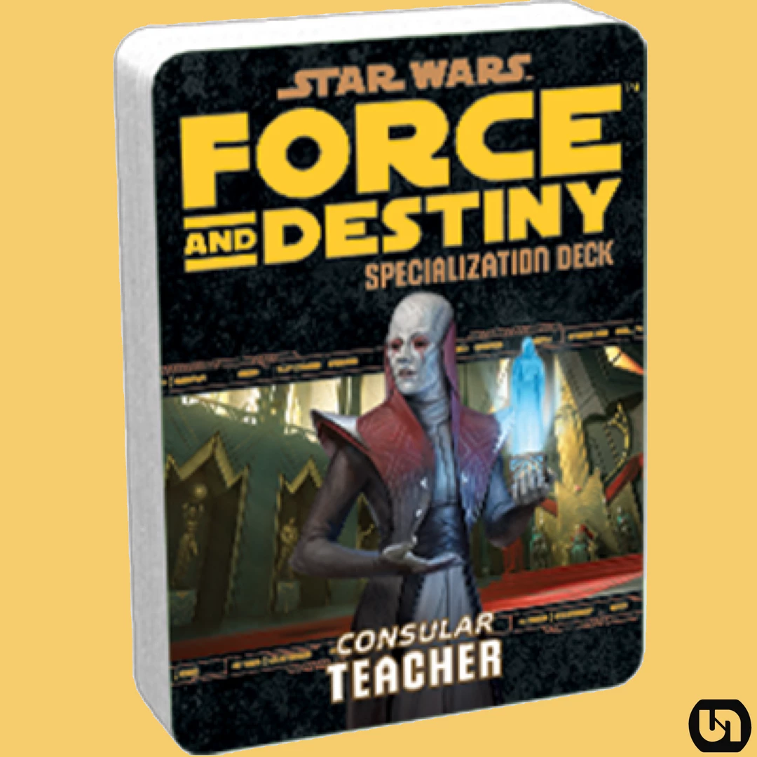 The Teacher has learned all they can and now seek to share that wisdom with others; bring out the full potential of your Consular and their students with the Teacher Specialization Deck for the Star Wars™: Force and Destiny™ roleplaying game. Each Force and Destiny Specialization Deck includes twenty cards detailing the talents of a specialization. More than just quick reference cards for the gaming table, the Teacher Specialization Deck features thematic art on every card to help bring the Star Wars galaxy to life.After the dissolution of the Jedi Order, how might a Consular knowledgeable in the ways of the Force benefit the galaxy?