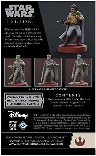 Roll the dice and lead your forces to victory with the Lando Calrissian Commander Expansion for Star Wars: Legion! One of the most infamous gamblers in the Star Wars galaxy, Lando Calrissian injects more unpredictability into your battle, keeping your opponent guessing your next move. But not every bet pays off, and you’ll have to be careful not to give enemy forces any unneeded advantages.