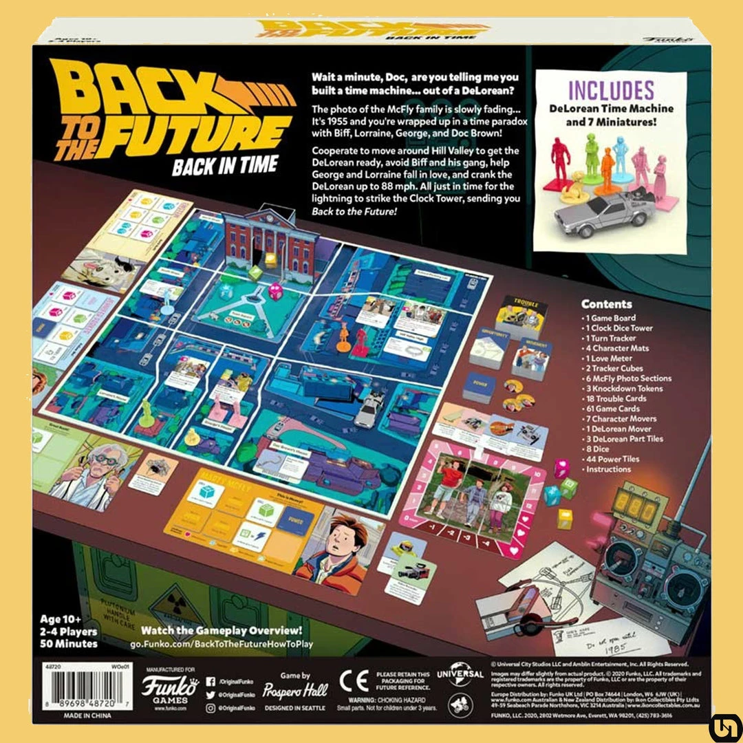 Prepare for a DeLorean-fueled race against time to prevent Marty McFly’s future from fading away! Players take on the roles of major characters from the blockbuster movie that launched the time traveling trilogy and helped define the 1980s. Players work together to defeat Biff and his trouble-making gang while ensuring Marty’s parents fall in love and the DeLorean accelerates to 88 mph in time to blast Back to the Future. Filled with cinematic touchstones and fun strategic choices, this is the game fans have been waiting for!