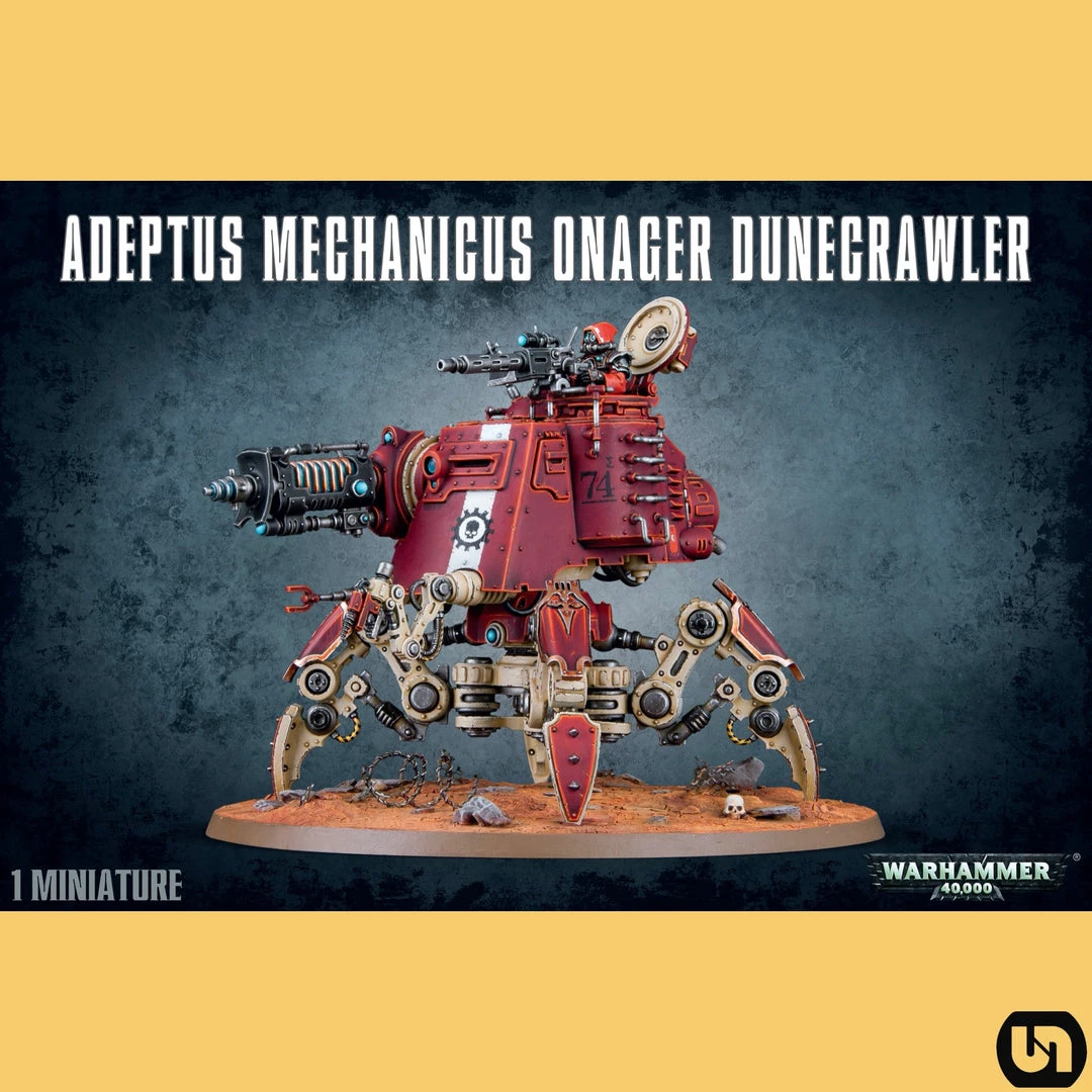 Included with this 119-component multi-part plastic kit, making one Onager Dunecrawler, is a small Adeptus Mechanicus transfer sheet and a 130mm round base.