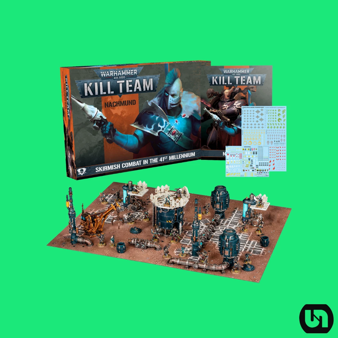 Kill Team: Nachmund is the second full expansion box for Warhammer 40,000: Kill Team, the ultimate sci-fi skirmish game. It includes miniatures for two complete new Kill Teams – the piratical Aeldari of the Corsair Voidscarred and the sinister superhumans of the Chaos Space Marine Legionaries – as well as double-sided game board, terrain, transfers, and a rules manual featuring missions, background material, and full rosters for these two Kill Teams.