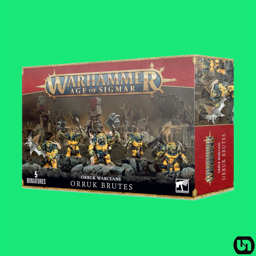 This multi-part plastic kit contains the components you’ll need in order to assemble five orruk Brutes! Festooned with trophies of war, featuring massive metal or bone jaws, they can be armed with two choppas, or a double-handed jagged gore-hacka. One in five can be armed with a massive gore-choppa, and one model can be assembled as a Brute Boss, armed with either a boss choppa or a boss klaw and brute smasha. 102 Components in total, with 5 Citadel 40mm Round bases.