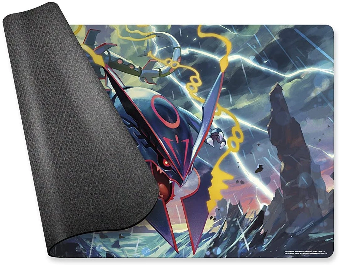 Two feet wide and sky high-that’s the awesome power of this Shiny Mega Rayquaza playmat, ready to turn your next match in the Pokemon Trading Card Game into an epic brawl! Measures 24″ x 14″