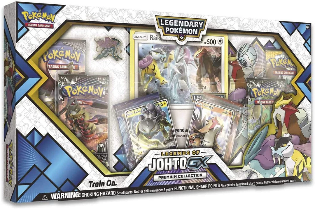Raikou, Entei, and Suicune certainly made their mark in the Johto region, and now they can do the same for your Pokémon Trading Card Game library. With the Pokémon TCG: Legends of Johto GX Premium Collection, these Legendary Pokémon come together to boost the power of your deck. Raikou-GX and Entei-GX make an appearance as awesome foil promo cards, while Suicune is represented on a coin and a beautiful collector’s pin.