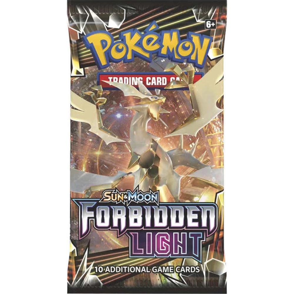 Taking the Pokémon world by surprise, Necrozma has absorbed a Legendary Pokémon and taken on a new form as Ultra Necrozma-GX! Other Pokémon gather to welcome this new light…or to resist it. Lucario-GX, Greninja-GX, Zygarde-GX, Yveltal-GX, Naganadel-GX, even Volcanion Prism Star and the majestic Arceus Prism Star must choose a side. Discover awesome Pokémon and mysterious treasures in the Pokémon TCG: Sun & Moon—Forbidden Light expansion!