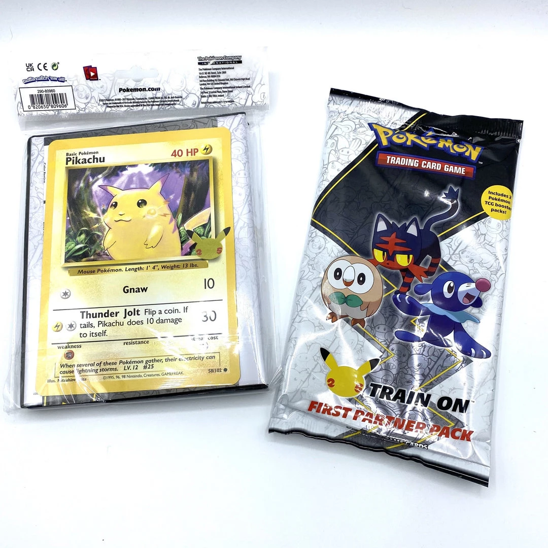 A big celebration—with gigantic Pokémon TCG cards! This Alola First Partner Pack contains a set of 3 awesome oversize cards for your Pokémon TCG collection, featuring the three first partner Pokémon of the Alola region—Rowlet, Litten, and Popplio—plus two regular Pokémon TCG booster packs! Collect your favorites, trade them, and celebrate 25 awesome years of Pokémon with the first partners who stick with you from your very first Pokémon moments!
