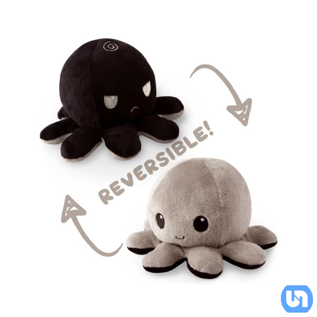 Teeturtle Reversible Octopus: Black & Gray Plush